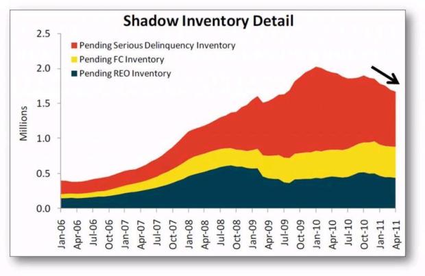 The inventory of future short sales and foreclosures which will be coming to the market is known as ‘shadow inventory’. Future real estate pricing will be determined by the number of these distressed properties which eventually reach the market.