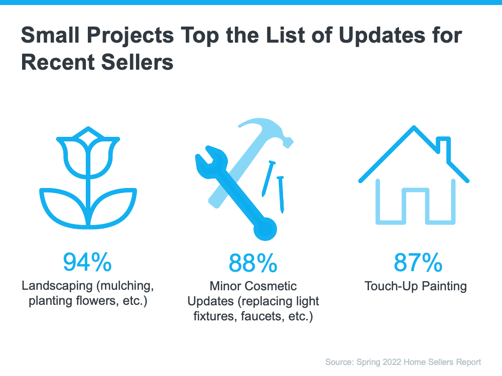 Because of this, you may be able to focus on less time-consuming tasks before putting your house on the market. According to the survey mentioned above, some of the top things recent sellers completed before listing over the past year include landscaping, making minor cosmetic updates, and touching-up paint (see image below):